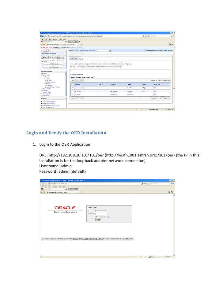 Oracle WebLogic Server 11g: Administration Essentials Duration: Configure Oracle HTTP Server as the Web-tier front end for Oracle WebLogic Server instances and Explaining Oracle WebLogic Server Installation Steps Installing WebLogic Server Using Both the Graphical User Interface ... View Document