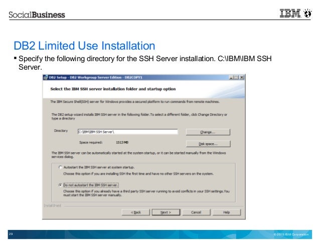 Place the IBM’s “DB2 Server for Windows CD-ROM into your CD drive on your computer system. IBM DB2 Client Software Installation Guide IBM DB2 Database Server Installation and Setup is now complete. ... Return Document