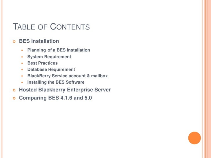 BlackBerry Enterprise Server for Microsoft Exchange Version: 5.0 Test the BlackBerry Enterprise Server installation Installation and Configuration Guide Planning a BlackBerry Enterprise Server installation 9. Installing the BlackBerry Collaboration ... Read Here