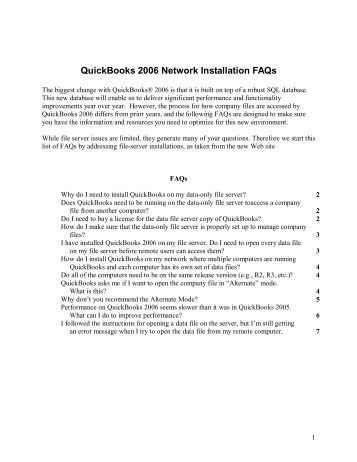 QuickBooks 2007 Network Installation Guide 10/16/06 v. 1.1 QuickBooks 2007 has a new installation routine and a new QuickBooks Database Server ... Fetch Full Source
